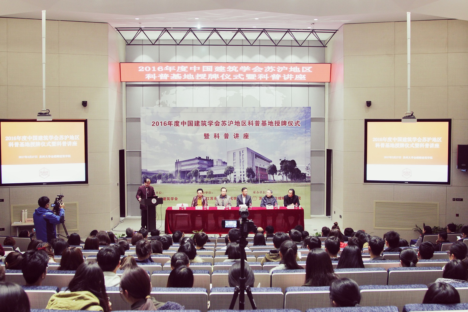 3月27日上午,2016年度中国建筑学会苏沪地区科普基地授牌仪式暨科普讲座在苏州大学博彩平台