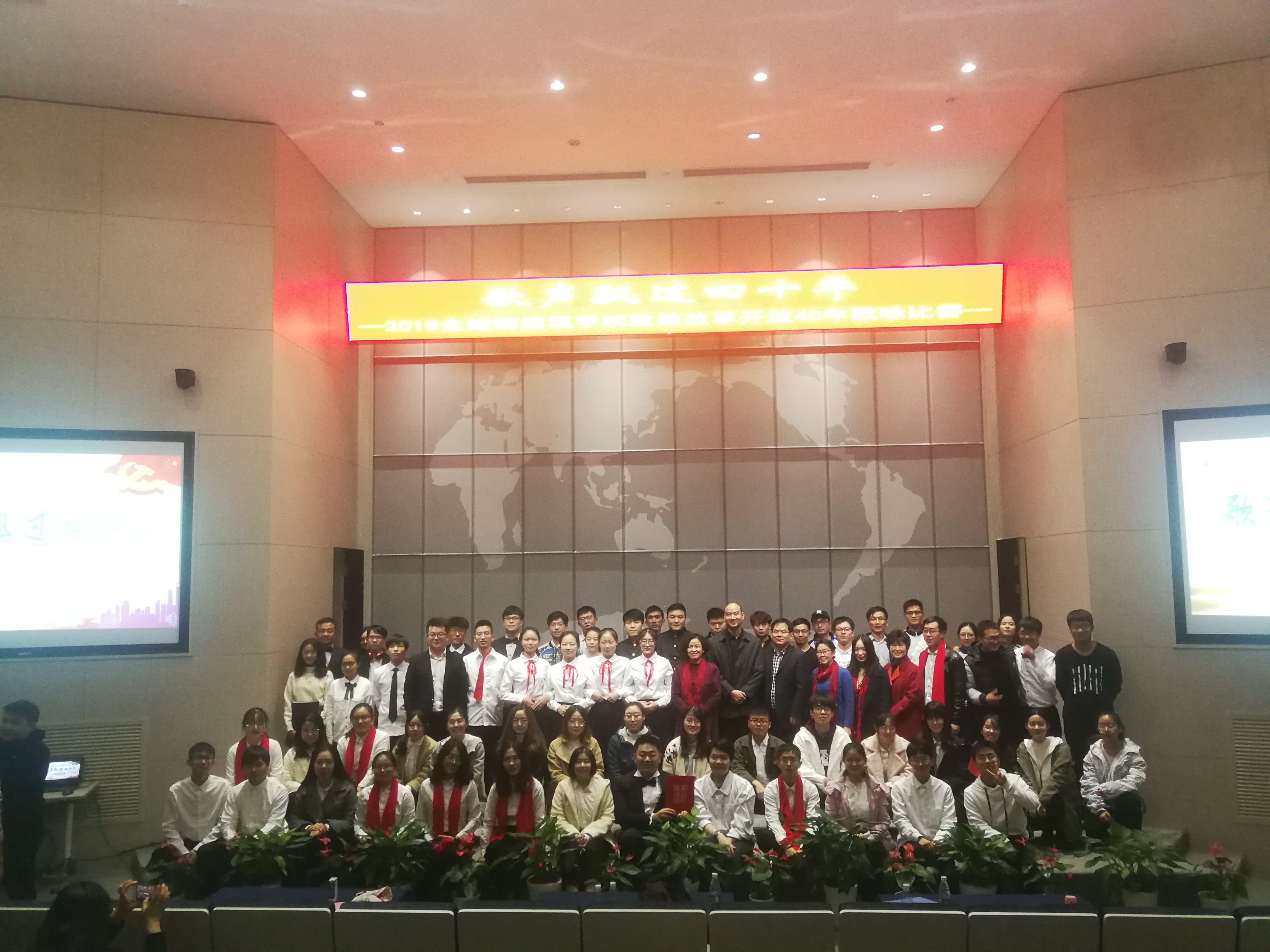 12月5日下午两点,“歌声飘过四十年”——致敬改革开放四十周年歌咏比赛在梦溪厅正式拉开帷幕,师生同台,放声歌唱祖国40年来取得的辉煌成就,抒发心中的无限激情。博彩平台党委副书记(主持工作)陈国凤老师,副院长茆汉成老师,建筑系张晓峰、叶露老师、风景园林系马建武、付晓渝老师,本科生班主任王珲、田雅丝、王杰青、吴捷、郑丽以及教工党支部全体老师等应邀出席,博彩平台各党支部、各班团支部以及教职工代表共300余人参加了此次歌咏比赛活动。