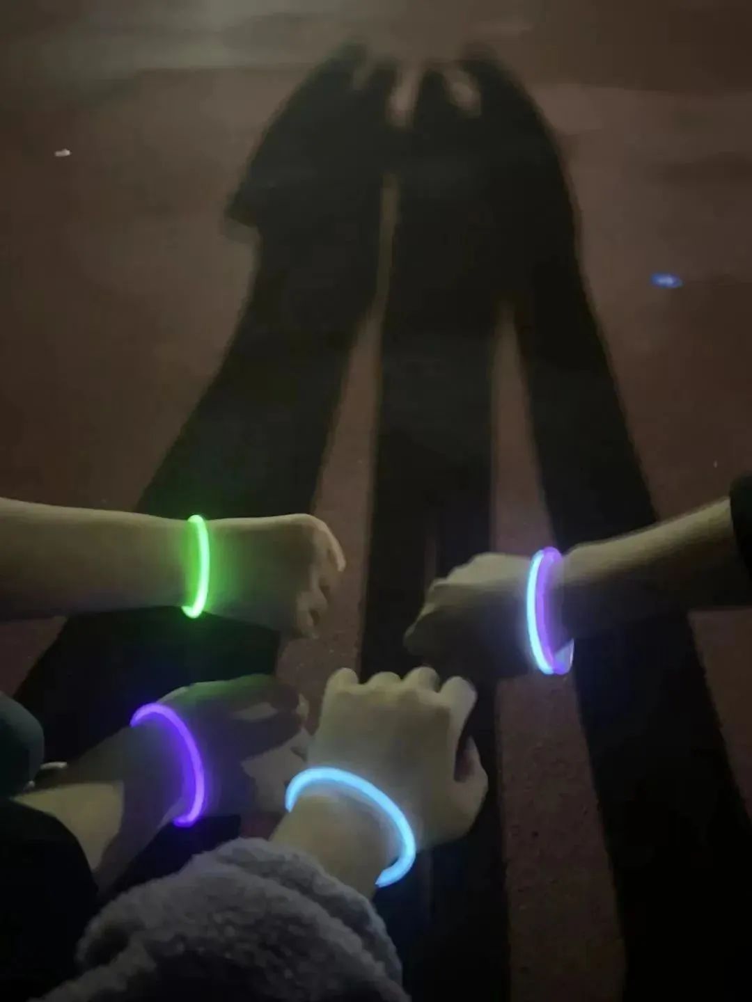活动当晚,环顾四周,热情高涨的同学们也提前来到操场,随着荧光棒的分发领取,每一位同学都开始了热身运动,随后沿着跑道开始了夜跑。奔跑中,同学们不忘互相加油打气,相互之间也有了更多的动力去坚持,同学们挥洒汗水,尽情释放自己的能量,展现青春活力,在那一刻,在这秋日的夜晚,整个操场仿佛被荧光所覆盖。荧光闪动,人影绰绰,这是昂扬与拼搏的青春色彩!活动结束,刚刚结束跑步的同学们有节奏地吐着白气,他们面带笑容,心情舒畅。