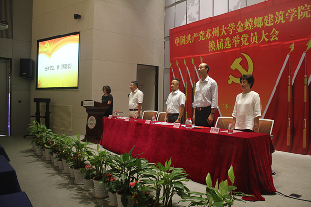 7月4日下午,在雄壮的《中华人民共和国国歌》声中,中共苏州大学博彩平台 委员会换届选举党员大会在学术交流中心梦溪厅隆重开幕。会议应到正式党员101名,实到91名。大会由博彩平台党委副书记陈国凤主持。