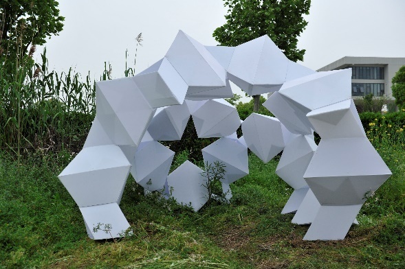 星垒:设计由多个六面体连接构成,每五个六面体组成一个五角星。五星红旗是中国国旗,五星代表着中国共产党领导下的人民大团结。“星垒”将红五星的元素融入到作品设计中来,以此致敬建党百年。透过阳光,堡垒中的五角星在地面形成的一个个投影,象征着为实现中华民族伟大复兴而艰苦奋斗、开拓进取的中国共产党人的伟大精神已经深深投进了亿万华夏子女的心中。