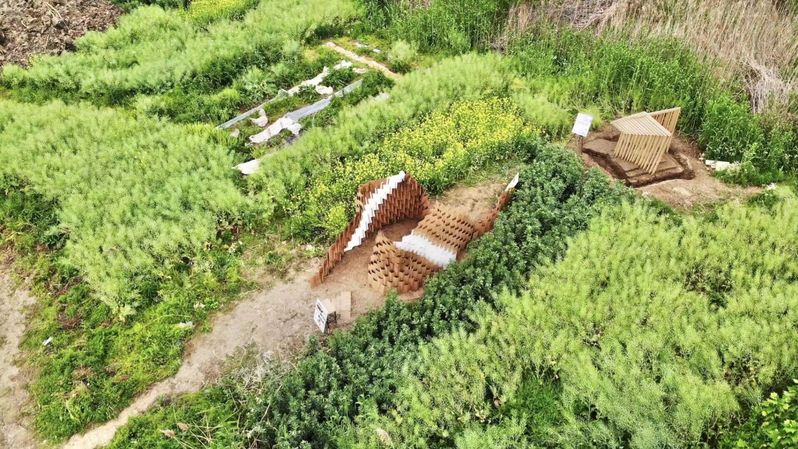 经过同学们精心巧思和指导老师的用心指导,历时六个周,2020级的同学集思巧手,让11个优秀作品从图纸中走出来,呈现在田野上。它们分别是: