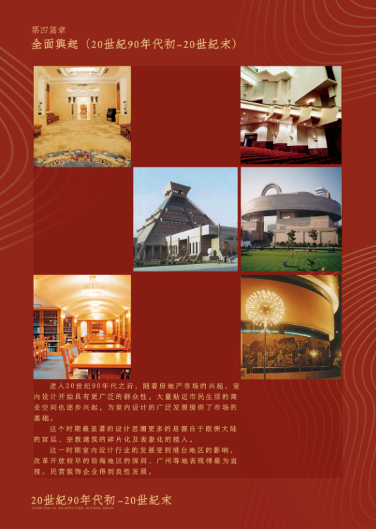 新中国成立以来,室内设计经历了一个从初创到繁荣发展的过程。新中国成立初期,一直沿用装饰的概念,主要是通过界面装饰和陈设艺术品、家具等实现其自身的美学价值。改革开放以来,室内设计的概念开始逐步为人们所接受。随着经济的全面发展,各类社会活动和群众生活对物质体验和精神文化的诉求越来越高,室内设计开始逐步走向繁荣。在今天,世界日益全球化,中外设计观念发生着交流与碰撞,民族自觉性开始兴起,一段新的征程已然启航。